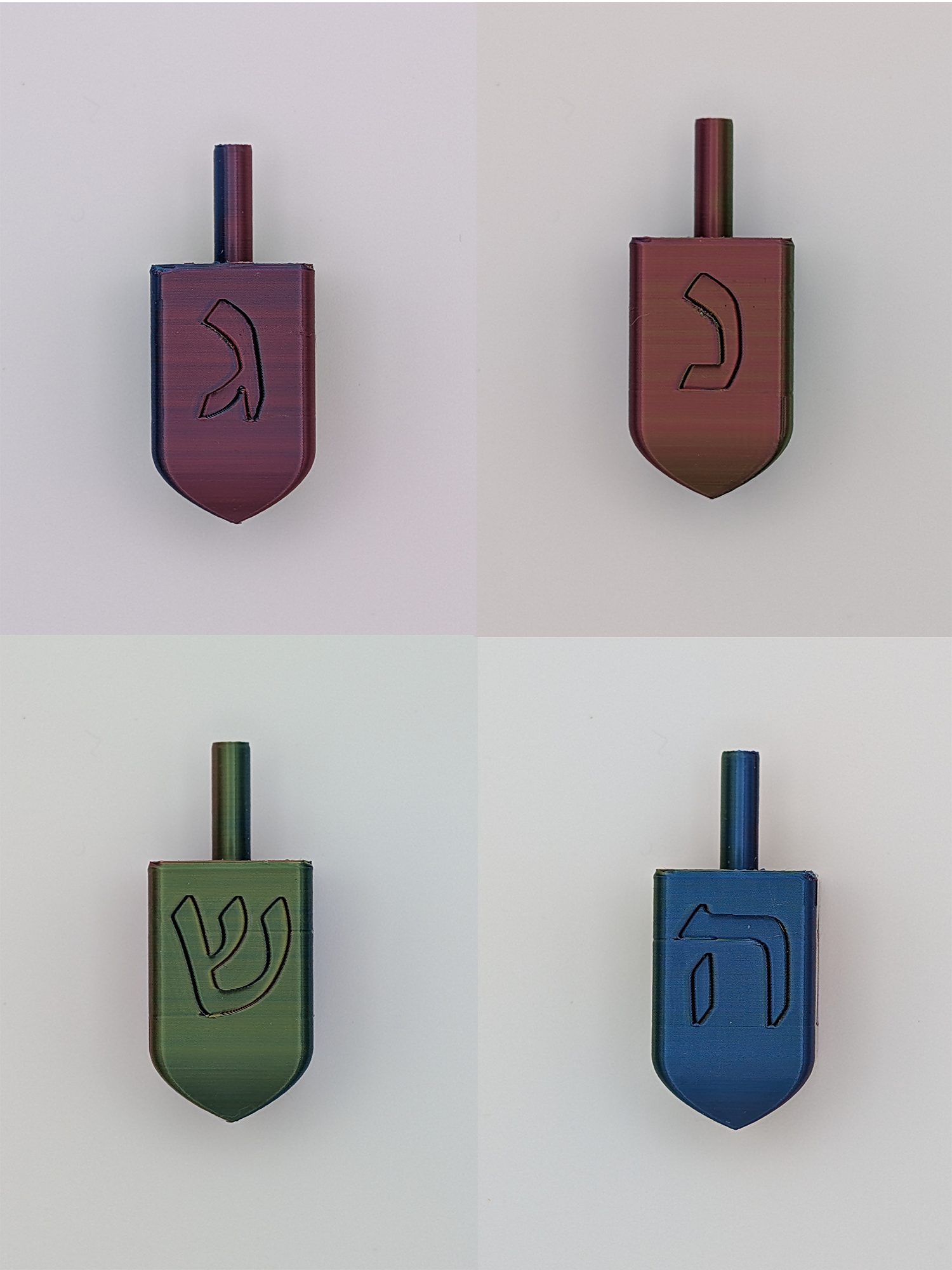 Spin into fun with this vibrant multicolor dreidel! Each side features a different shade, creating a stunning 3D-printed design that's as eye-catching as it is playful. Perfect for Chanukah celebrations, game nights, or adding a modern twist to your Judaica collection. Watch the colors blur as it spins—a delightful way to embrace tradition with contemporary flair.